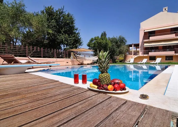 Villa Figareto de 215 m^2 est située à 2 km des Vieux Fort et à 1 km du Musée archéologique de Corfou. La villa propose des chambres dotées d'un espace de repas, un canapé et un bureau pour un séjour confortable.
